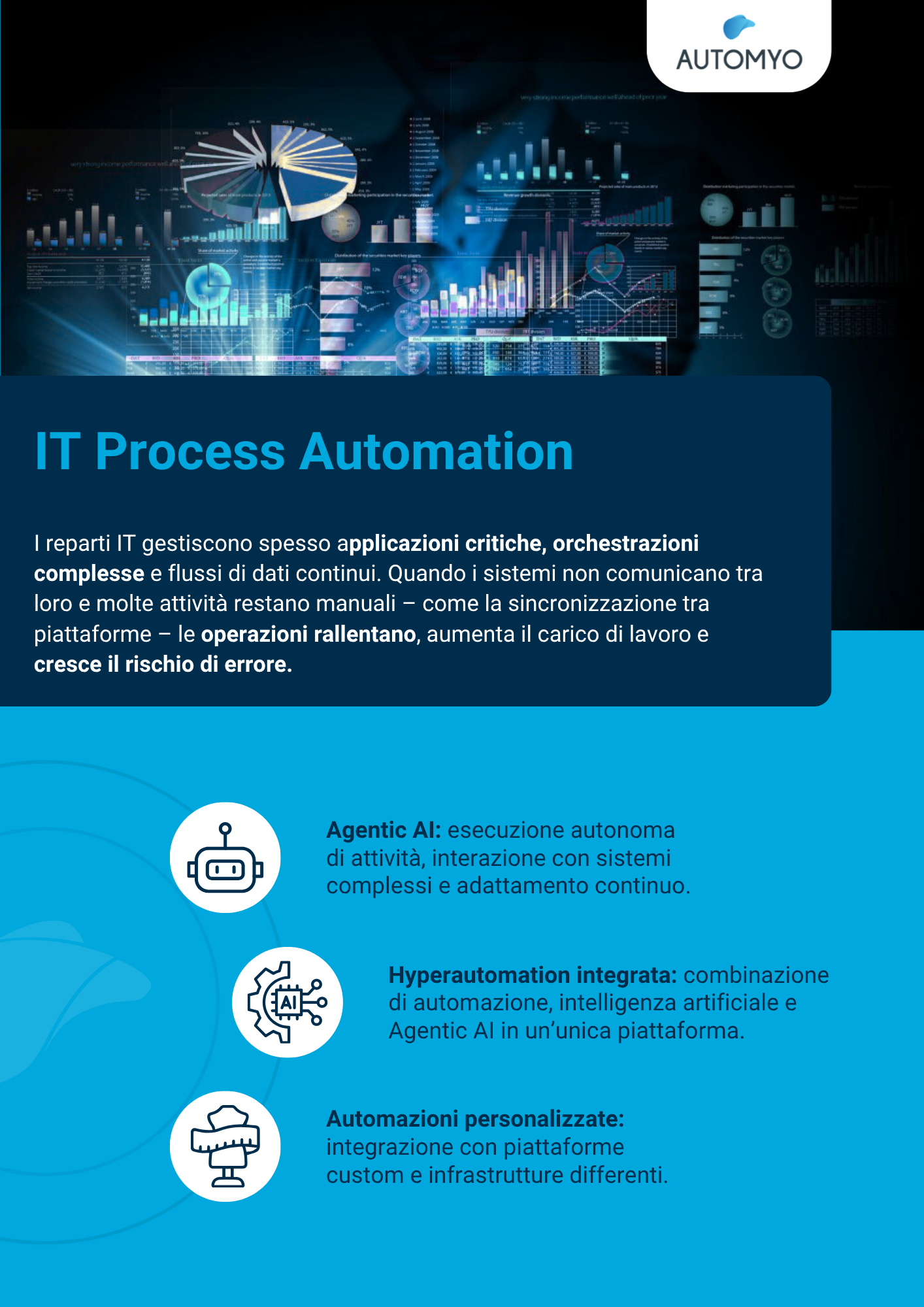 Automyo interviene in questi punti critici: automatizza le attività ripetitive, centralizza l’operatività e si integra con gli strumenti già in uso, rendendo il lavoro più fluido, tracciabile e scalabile.