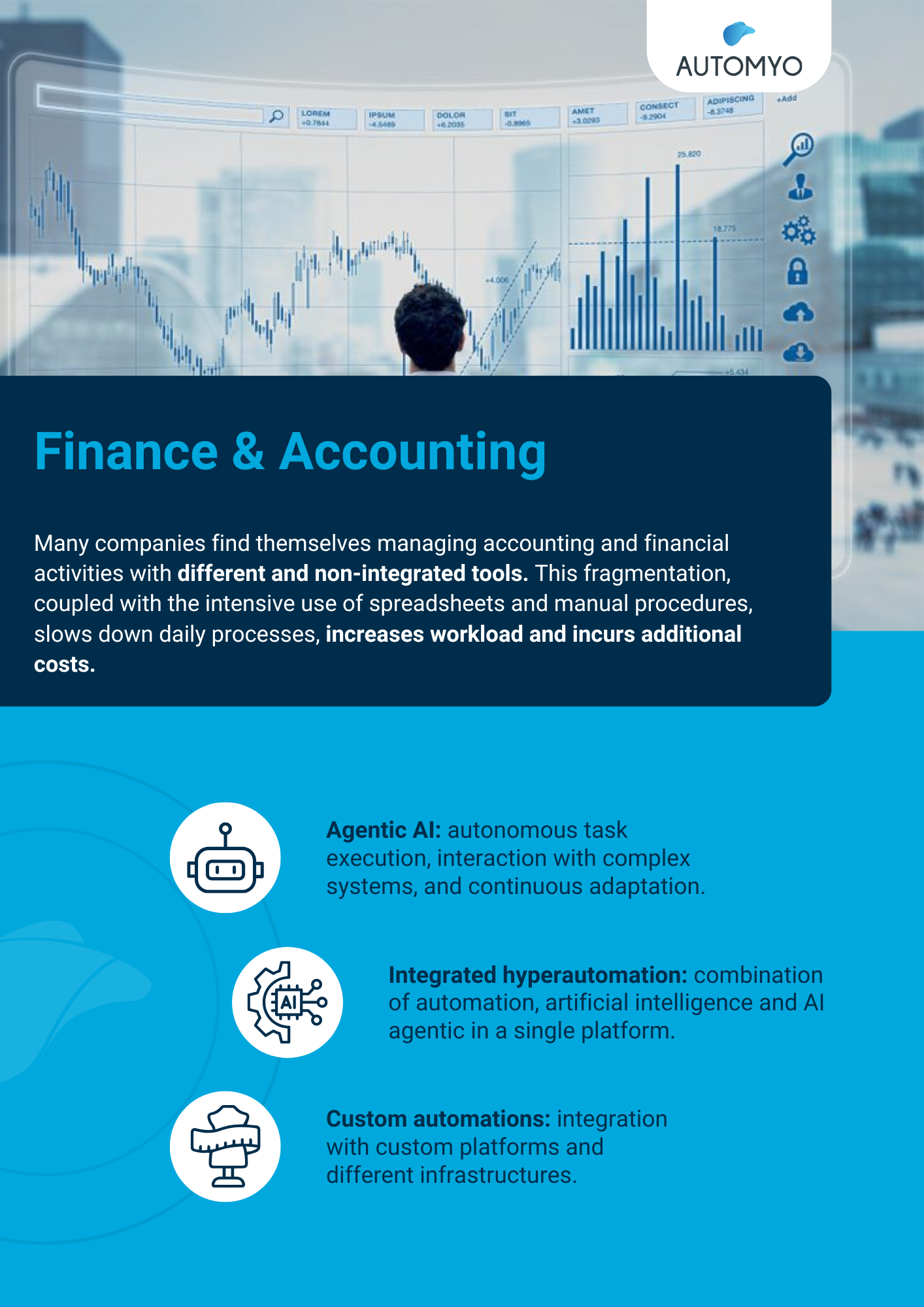 Finance and accounting departments are focused on repetitive tasks, complex approvals, and reconciliations between systems that are often not integrated. This makes processes slow and fragmented, with bottlenecks and a high risk of errors, some of which can be serious.